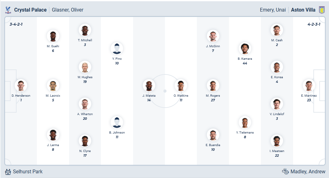 Crystal Palace khởi đầu mùa giải năm nay rất ổn khi bất bại trong những vòng đấu đầu tiên, tuy nhiên sau đó họ đá rất tệ. Đội bóng của HLV Oliver Glasner để thua 4/5 vòng đấu gần nhất và đã tụt xuống vị trí thứ 14 trên bảng xếp hạng. Tình thế rất đáng báo động với các cầu thủ Crystal Palace và họ cần một chiến thắng để tự tin hơn trong chặng đường sắp tới. Tuy nhiên đối thủ của họ ở vòng đấu thứ 21 này lại là Aston Villa, đội đang có phong độ tốt nên sẽ rất khó khăn. Nhiều khả năng lợi thế sân nhà là không đủ để giúp Crystal Palace có điểm.